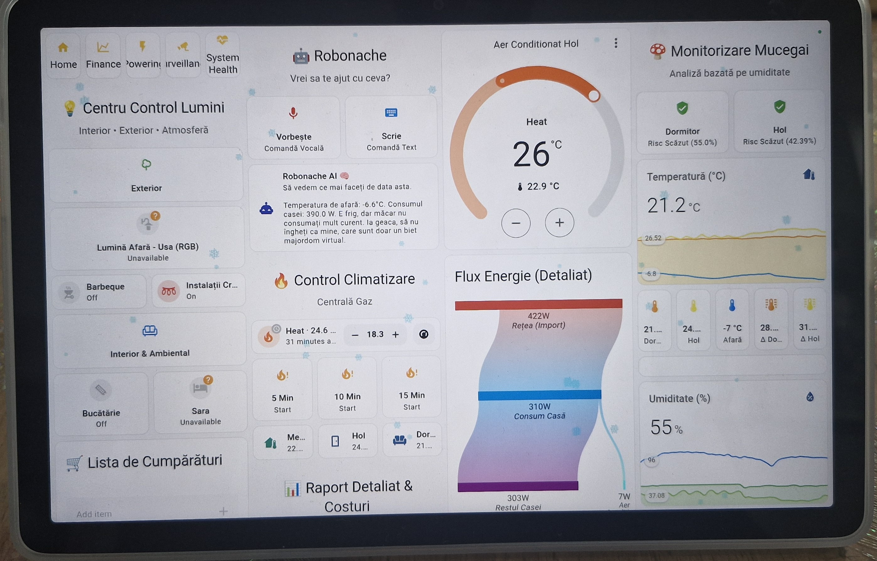 Deschide Pagina → 🌡️Control centrală, aer condiționat, risc mucegai și asistent vocal.