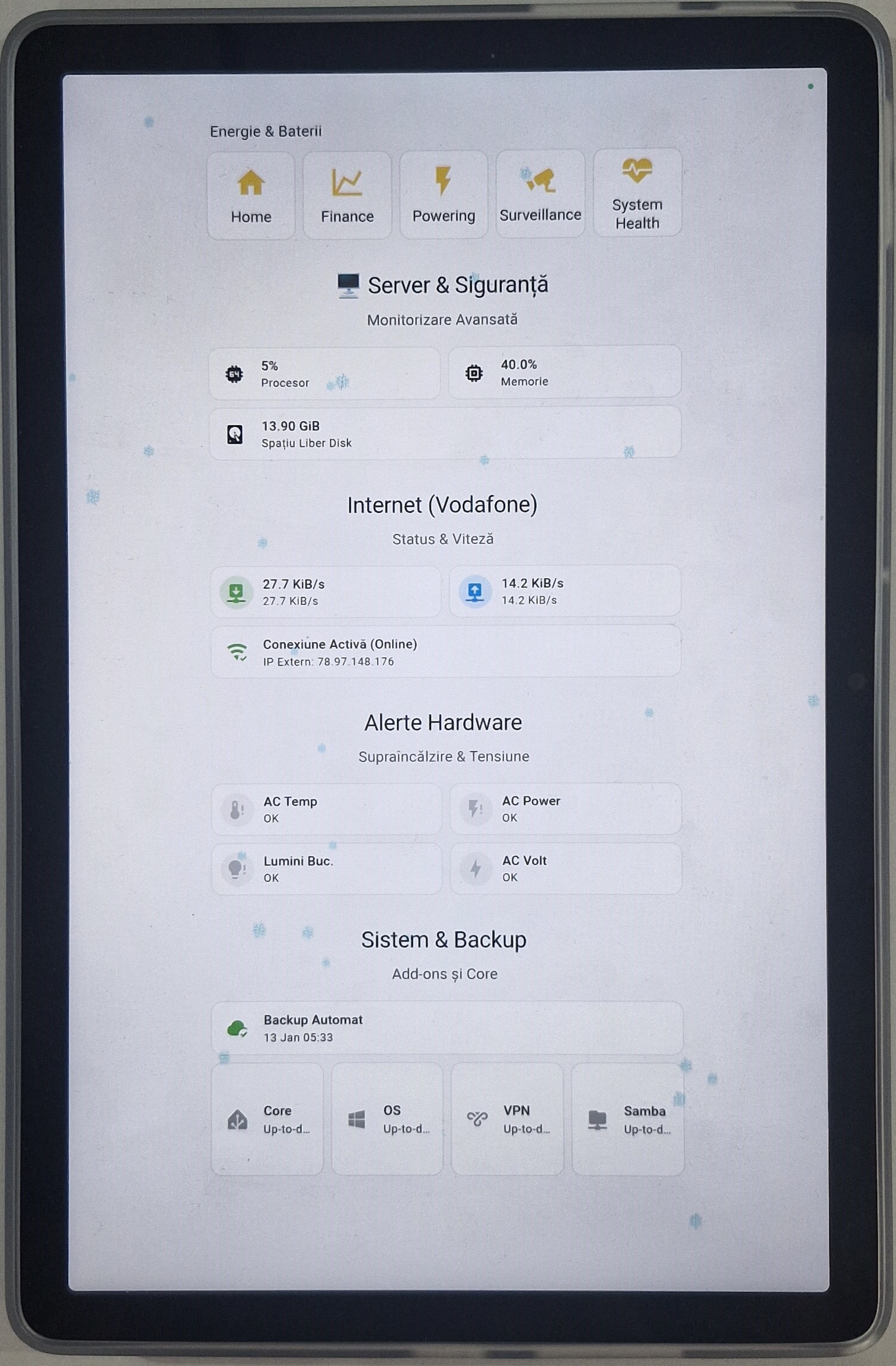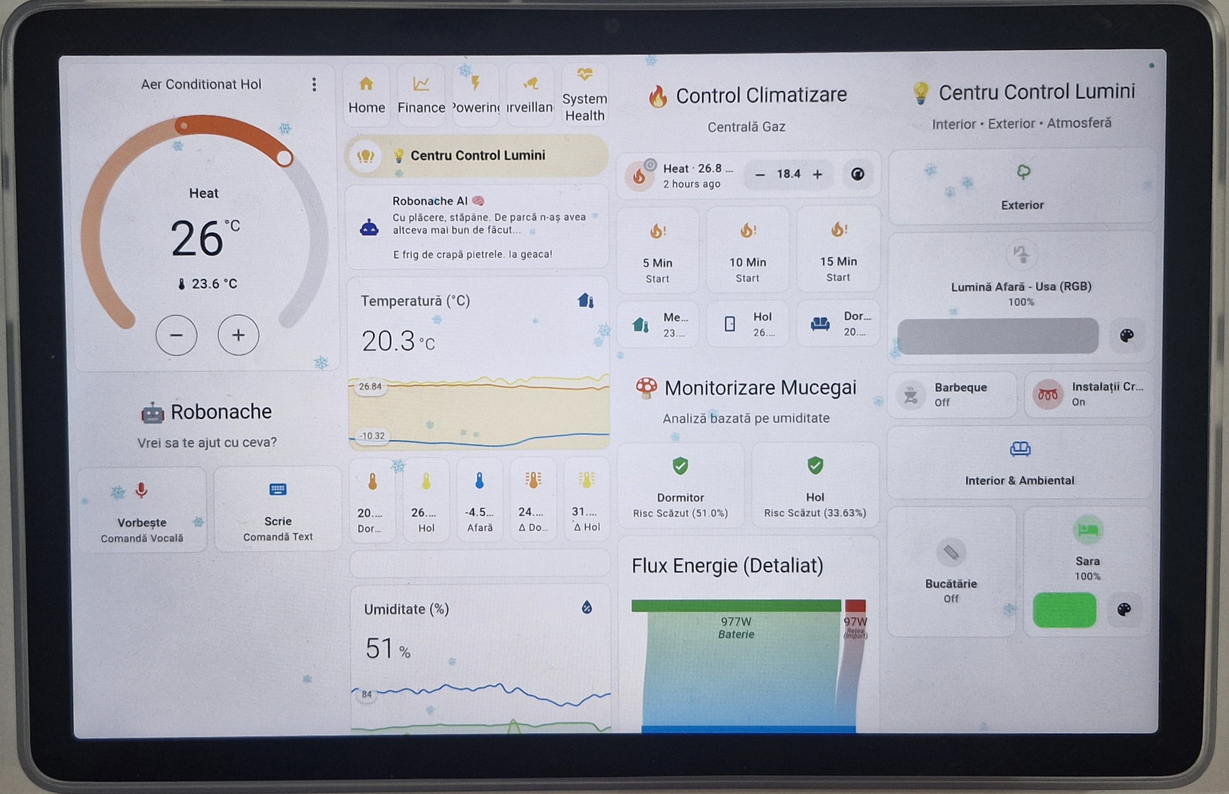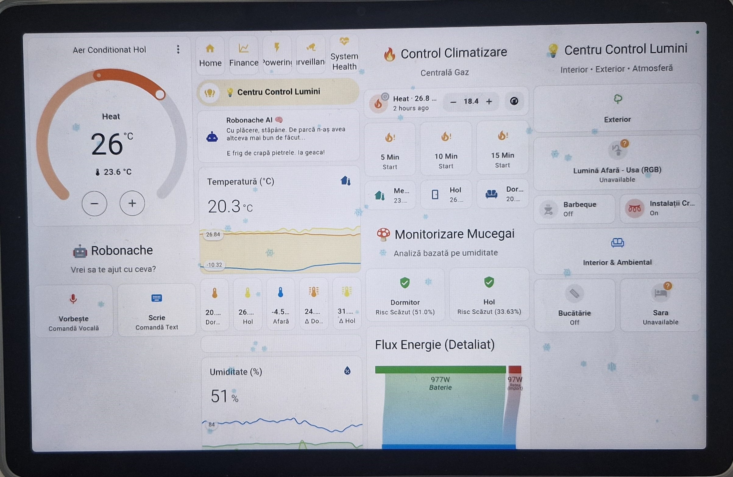 Deschide Pagina → 🌡️Control centrală, aer condiționat, risc mucegai și asistent vocal.
